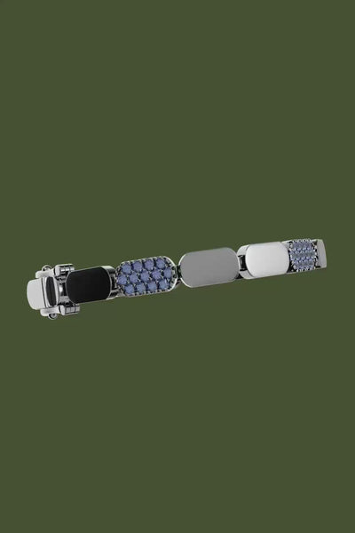 تُضفي الأحجار الزرقاء المتألقة تناغمًا راقيًا على تصميم هذا السوار، وتعزز تباينًا آسِرًا يلفت الأنظار.