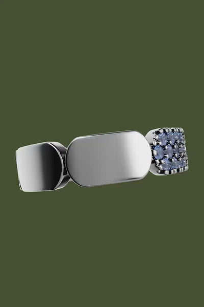 تُضفي الأحجار الزرقاء المتألقة تناغمًا راقيًا على تصميم هذا الخاتم، وتعزز تباينًا آسِرًا يلفت الأنظار.