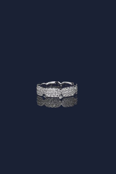 هذا الخاتم مصنوع يدويًا من الفضة الإسترليني ومرصع بالزركونيا على شكل مكعبات باللون الأبيض.