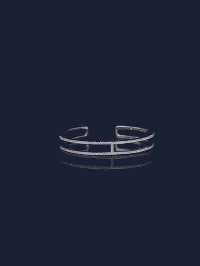 هذه الإسورة مصنوعة يدويًا من الفضة الإسترليني ومرصعة بالزركونيا على شكل مكعبات باللون الأبيض.