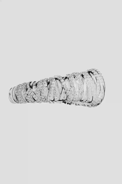 تتشابك الفضة الإسترلينية الملساء مع الترصيع Pavé الكامل لتشكل مزيجاً متناغماً وأنيقاً من الملمس والتألق. صُمم هذا السوار ليناسب جميع المناسبات، ويجسد الرقي والأناقة.