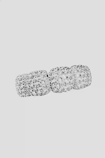 APM MONACO silver ring with embedded white stones on a white background