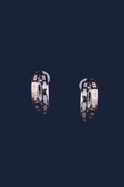 هذا الحلق مصنوع يدويًا من الفضة الإسترليني ومرصّع بالزركونيا على شكل مكعبات باللون الأبيض لتشكيل كلمة TOI MOI بلغة Morse Code السرية. المعنى منقوش على الجزء الداخلي أيضًا.