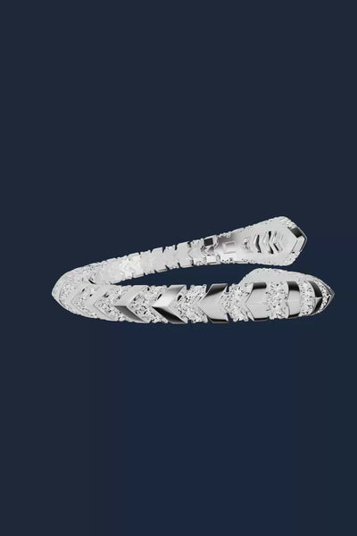 يُضفي هذا السوار الملفوف المرصّع بأسلوب باڤيه لمسة من الإشراق على كل إطلالة. يستوحي هذا التصميم رونقه من أوراق النخيل التي تزيّن ممشى الجنوب الفرنسي الخلّاب، في تناغمٍ يجمع بين الطبيعة والفخامة.