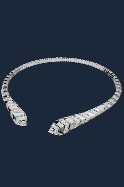 تُضفي قلادة تشوكر هذه المُرصّعة بأسلوب باڤيه لمسة من الإشراق على كل إطلالة. يستوحي هذا التصميم رونقه من أوراق النخيل التي تزيّن ممشى الجنوب الفرنسي الخلّاب، في تناغمٍ يجمع بين الطبيعة والفخامة.