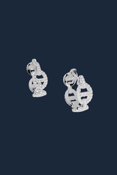 هذا الحلق مصنوع يدويًا من الفضة الإسترليني ومرصع بالزركونيا على شكل مكعبات باللون الأبيض.
