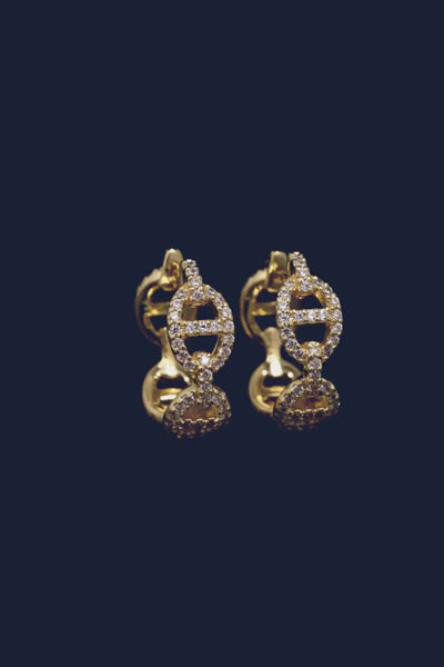 هذا الحلق مصنوع من سبيكة APM صفراء ومطلي بالذهب عيار 18 قيراط. ومرصع بالزركونيا على شكل مكعبات باللون الأبيض.