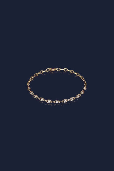 هذا السوار مصنوع من سبيكة APM ومطلي بالذهب الأصفر عيار 18 قيراط ومرصع بالزركونيا على شكل مكعبات باللون الأبيض. تمنح التقنية المستخدمة في تثبيت الحلق الأحجار تأثيرًا سلسًا وراقيًا.