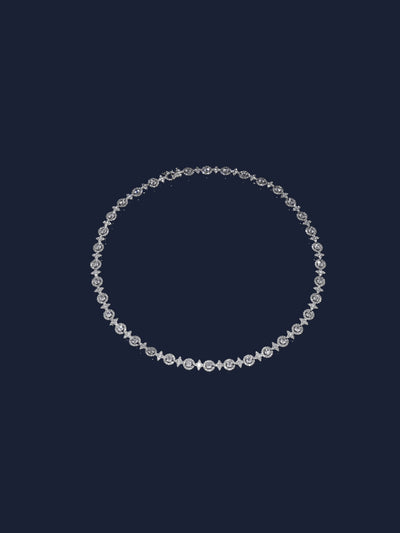 هذه القلادة مصنوعة يدويًا من الفضة الإسترليني ومرصعة بالزركونيا على شكل مكعبات باللون الأبيض.