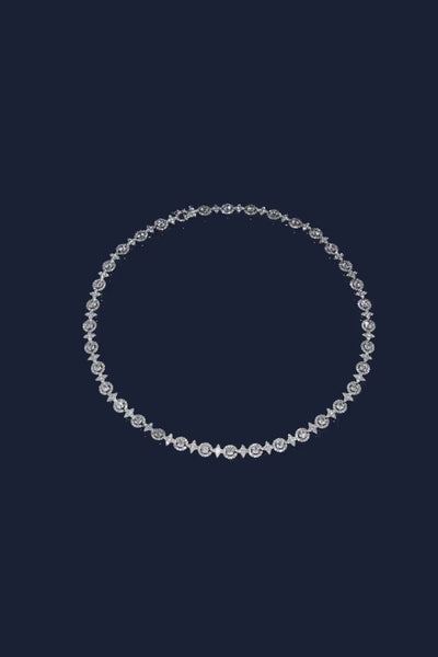 هذه القلادة مصنوعة يدويًا من الفضة الإسترليني ومرصعة بالزركونيا على شكل مكعبات باللون الأبيض.