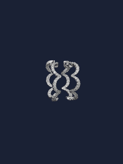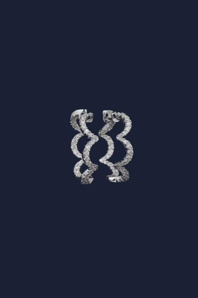 هذا الحلق مصنوع يدويًا من الفضة الإسترليني ومرصع بالزركونيا على شكل مكعبات باللون الأبيض.