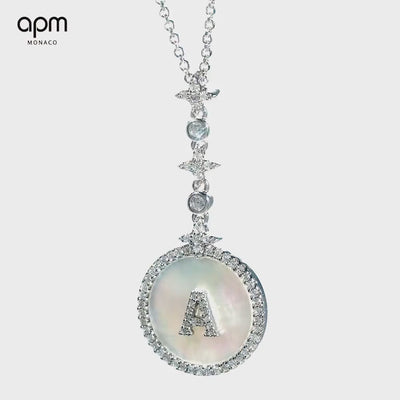 This necklace is handcrafted from sterling silver, the letter is micropaved with white cubic zirconia on a nacre medal.
