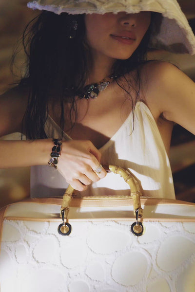Warranty covers clasps, loss of stones or pearls, and color fading on yellow, pink, gray, or black products. Warranty does not cover natural aging of the jewelry, damage caused by improper use, complete or partial loss of the jewelry, or any bags and accessories.