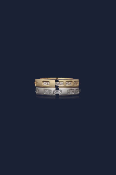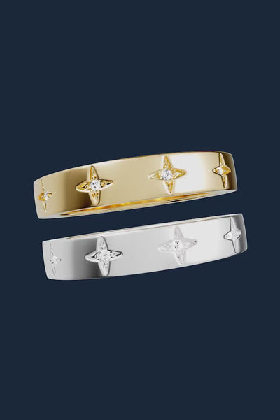 These rings are handcrafted from sterling silver and paved with white cubic zirconia. They are microset with white cubic zirconia to form the words TOI MOI in Morse Code secret language. The meaning is also engraved inside.